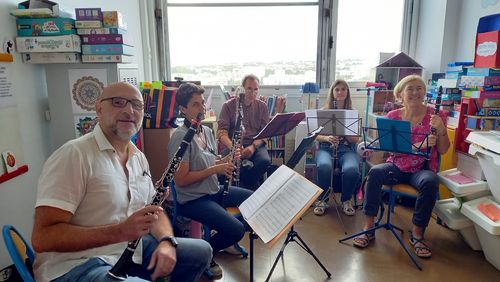 Photos des préparatifs du concert avec les bénévoles 1,2,3 Soleil.